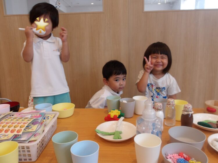 「おはじきやる?🥺」と楽しみにしていた子どもたちです。