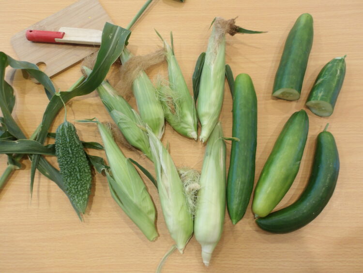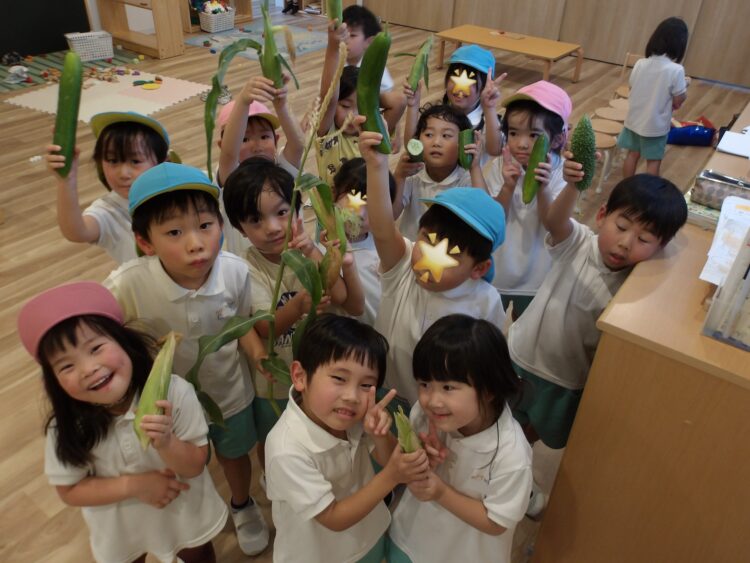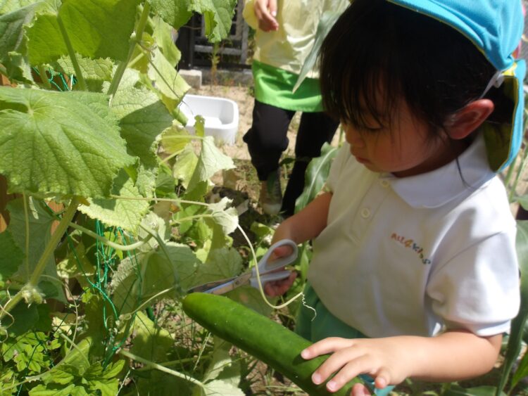 収穫する野菜がたくさんあったので、水やり当番だけでなく、みんなで畑へ向かいましたよ。