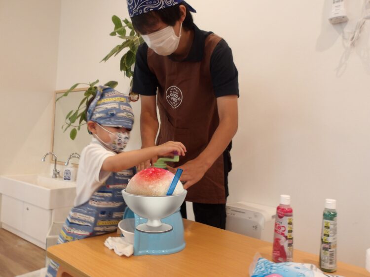 みんなには氷を削ってもらうのを手伝ってもらいました!