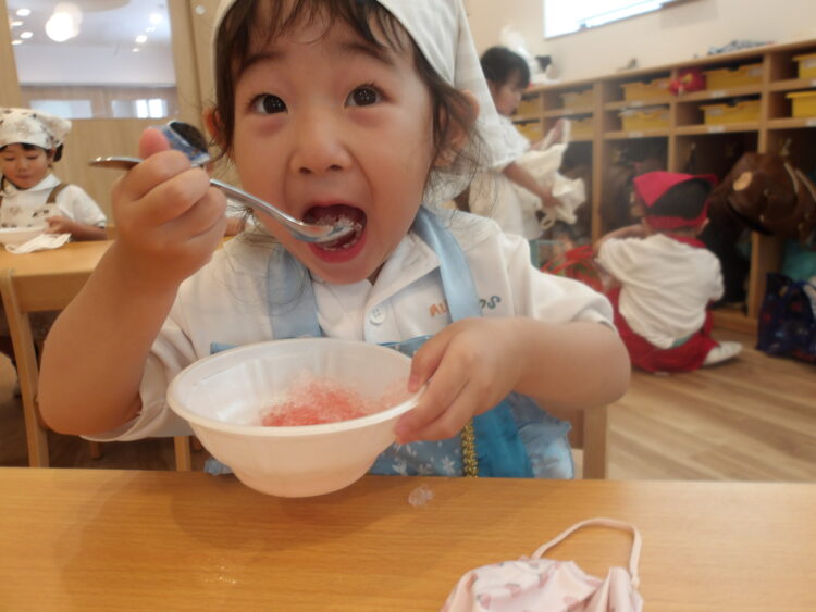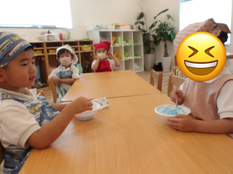 今日はそら組はクッキングを楽しみました!クッキングでは夏にっピッタリかき氷を作りました🍧