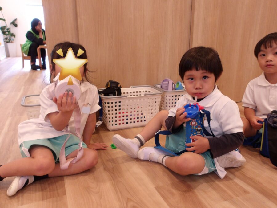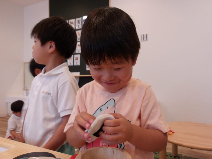 「これも使っていいよ!」と近くにいた友だちがおにぎりを持ってきてくれて思わずにっこり☺️🍙