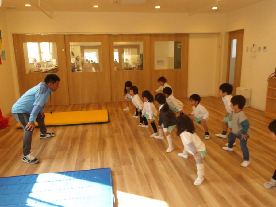 そらぐみさんの体操教室では準備体操から気合十分!