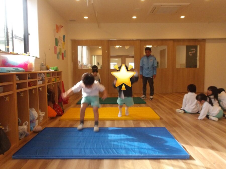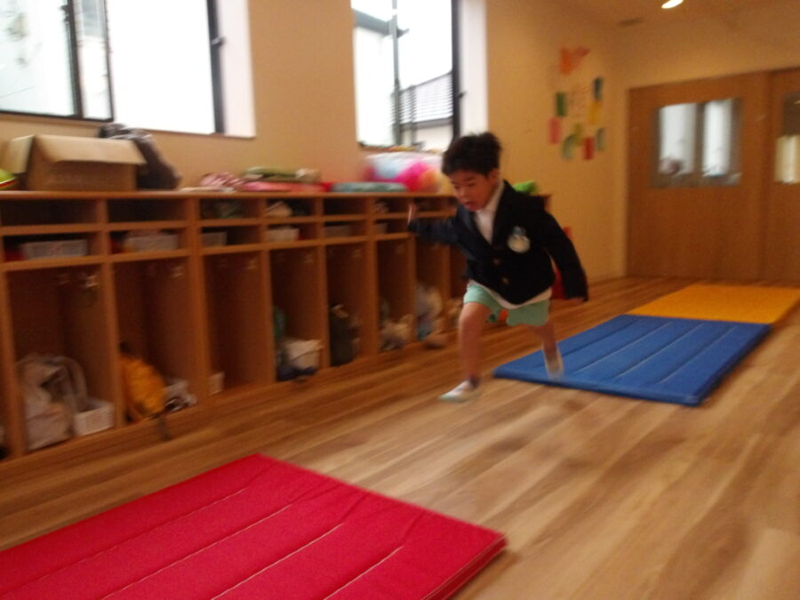 にじ組さん、たいよう組さんもマットの幅跳びに挑戦!