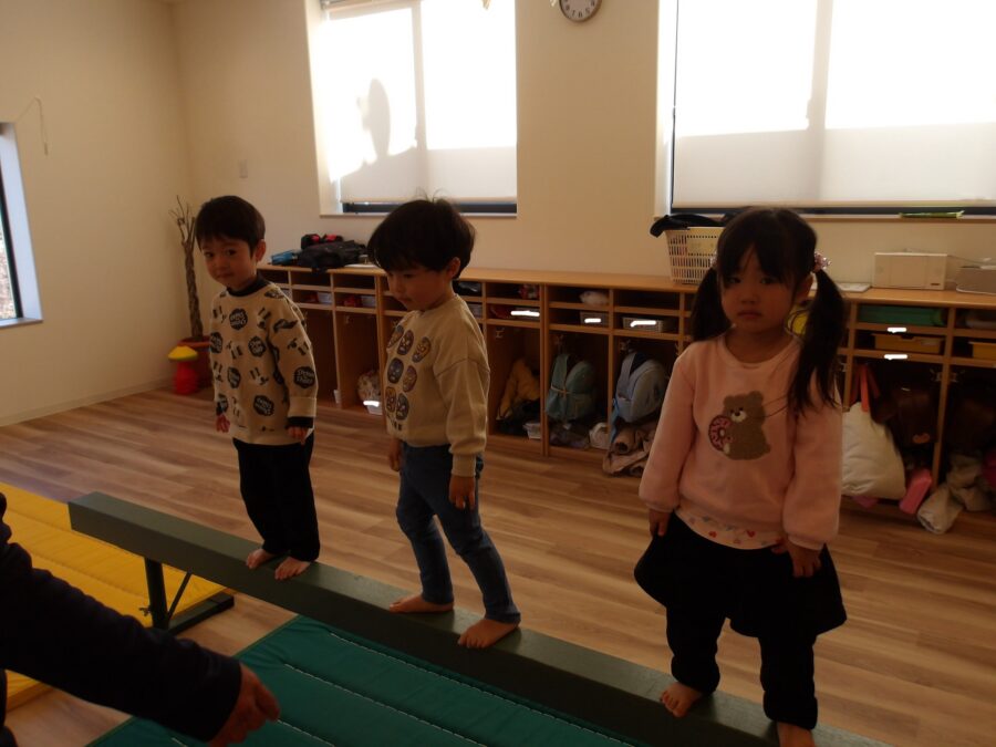 平均台に登れたら体の向きを変えたり、ジャンプで降りたりしました😌