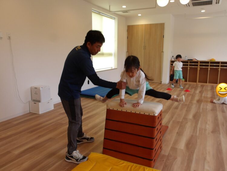 手をついて開脚跳びの練習もしたよ! まだまだお尻は付いちゃうけど綺麗に飛べるよ![]()