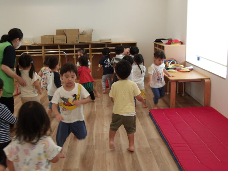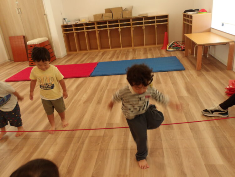 走っているところから止まらずにジャンプ!お友だちにお手本を見せてもらい頑張りました🎶