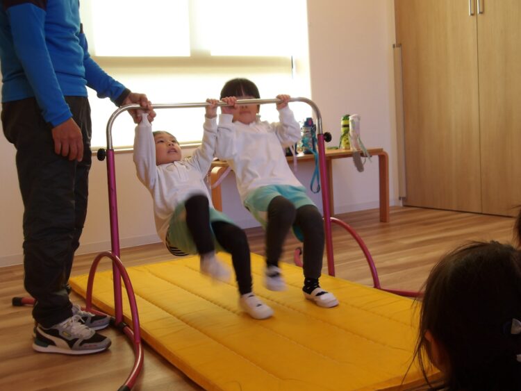 にじ組は足抜きまわり、逆上がりに挑戦。