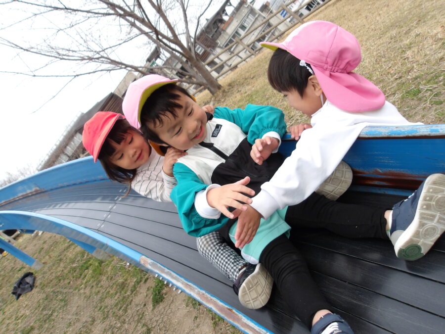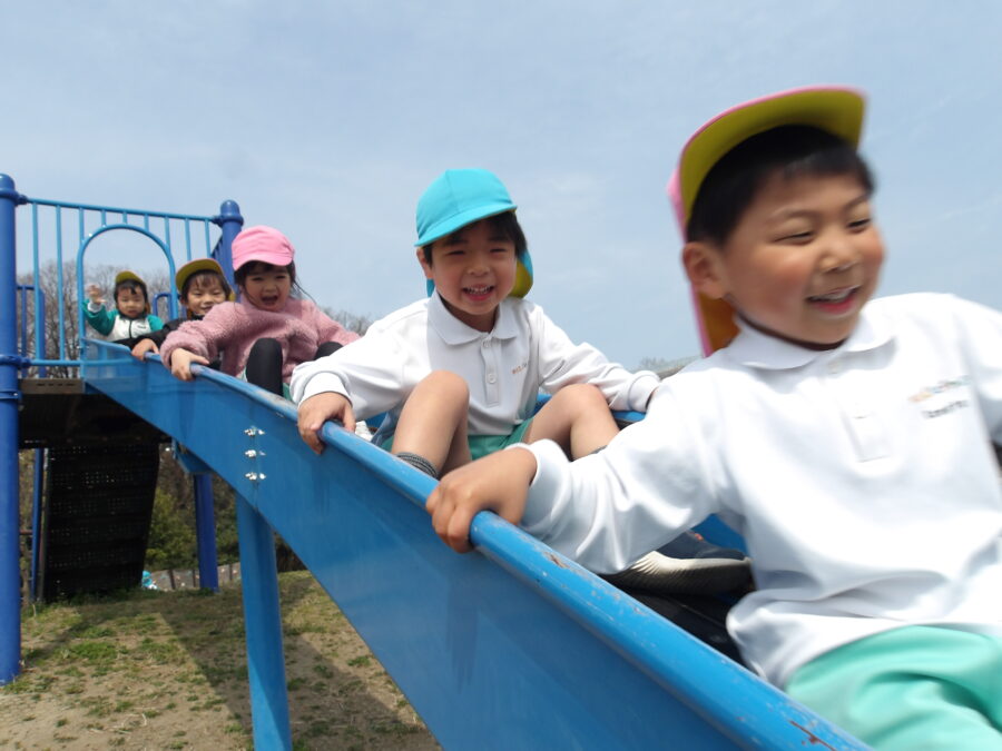 滑り台ではお友だちが連なって、みんなで一緒に滑る姿が多く見られました。