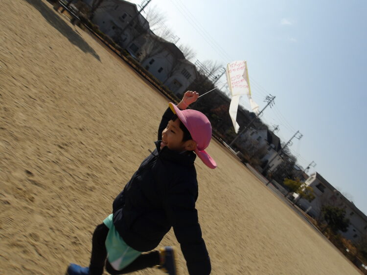 「せんせいー!!見てーー!!!」と大きな声で嬉しそうに言いながらグラウンドを駆け回る子どもたちでした😊🪁