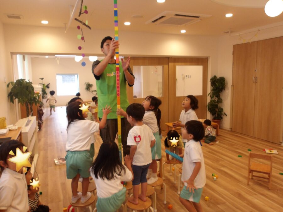 みんなで協力して天井に届きそうなくらい、高いレゴブロックタワーも作りました🗼✨