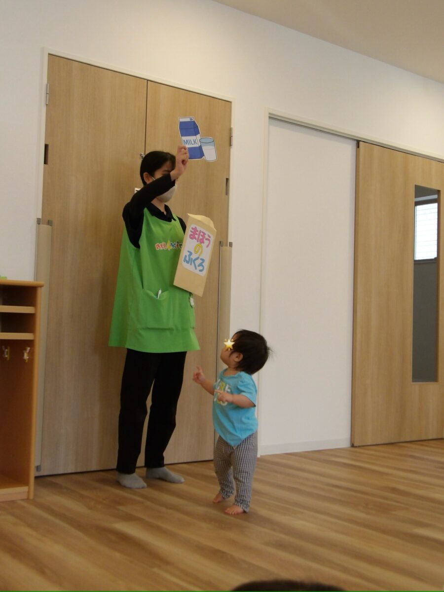 保育者からのプレゼントは食材を入れると、料理ができる〈まほうのふくろ〉