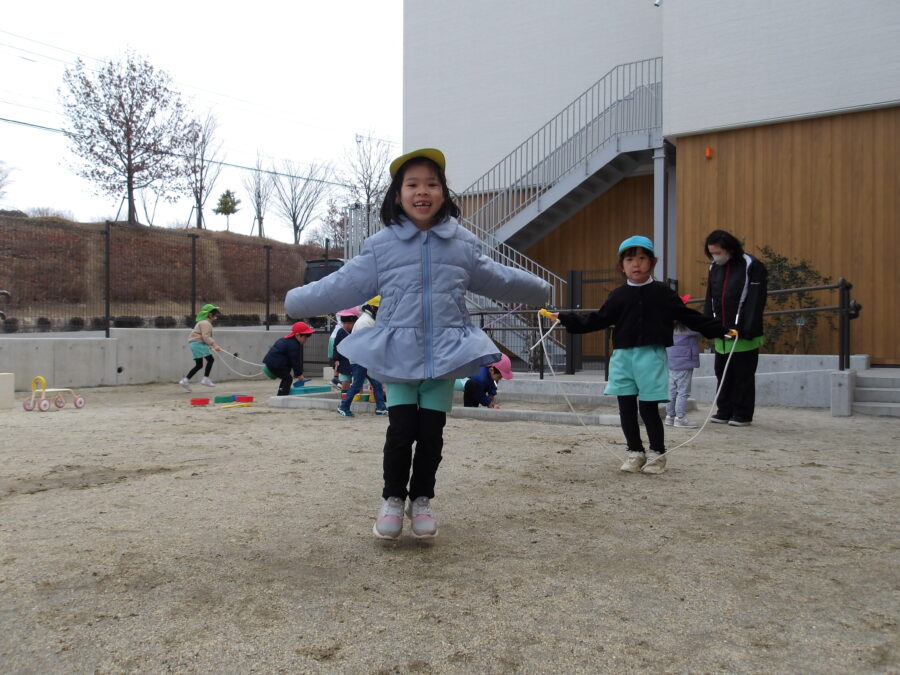 縄跳びをして遊ぶ子も! 「見て見て!沢山跳べるんだ!」などと沢山跳んで見せてくれました![]()