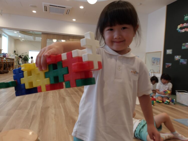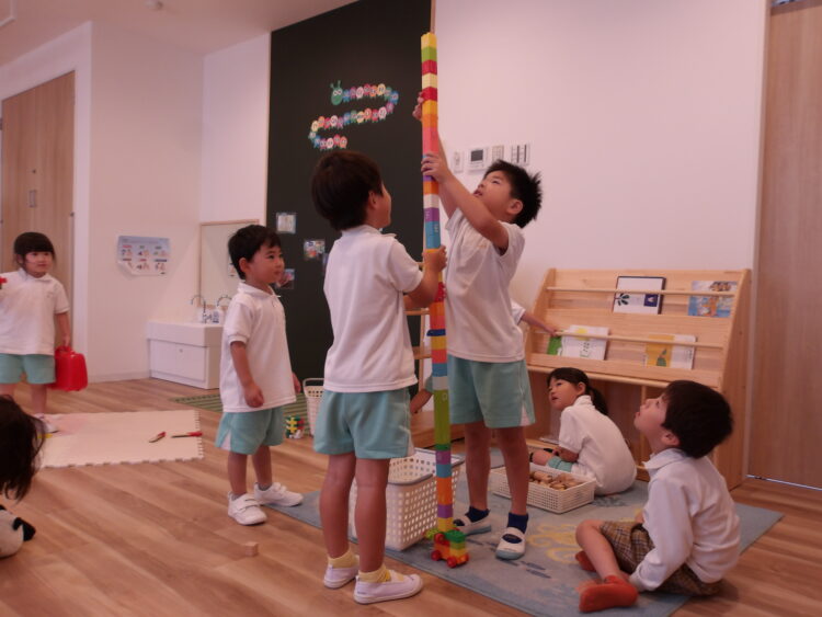 友だちと協力してもらいながら、大きなタワーを作ったり、