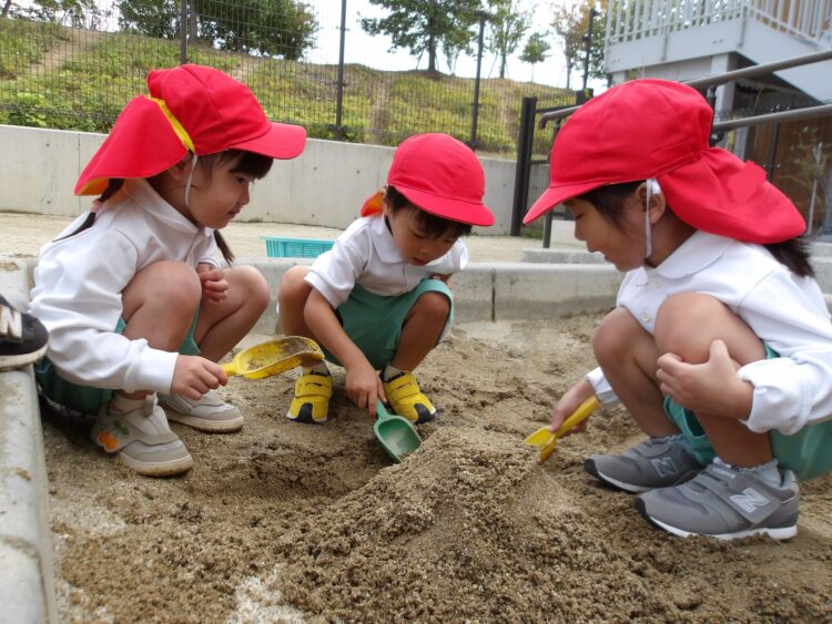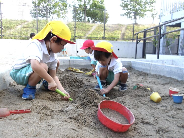 雨上がりで程よく土が湿っていて、園庭や砂場の各地で工事が行われていました