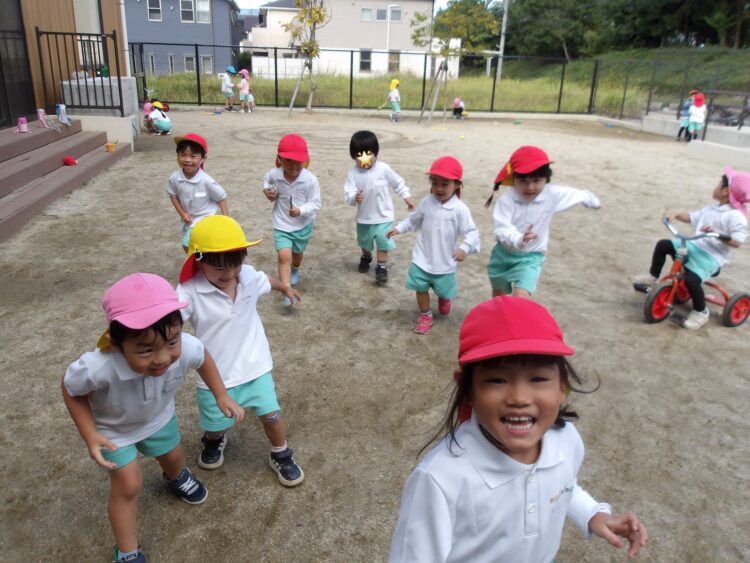 はじめは保育者が鬼をやっていたのですが、あそんでいるうちにルールが分かってきて、「やってみたい!」と鬼も代わりばんこでやってみました。