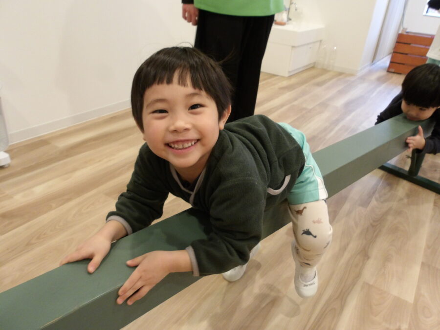 平均台では自分のできる姿勢で早く渡り切ろうと工夫していましたよ。