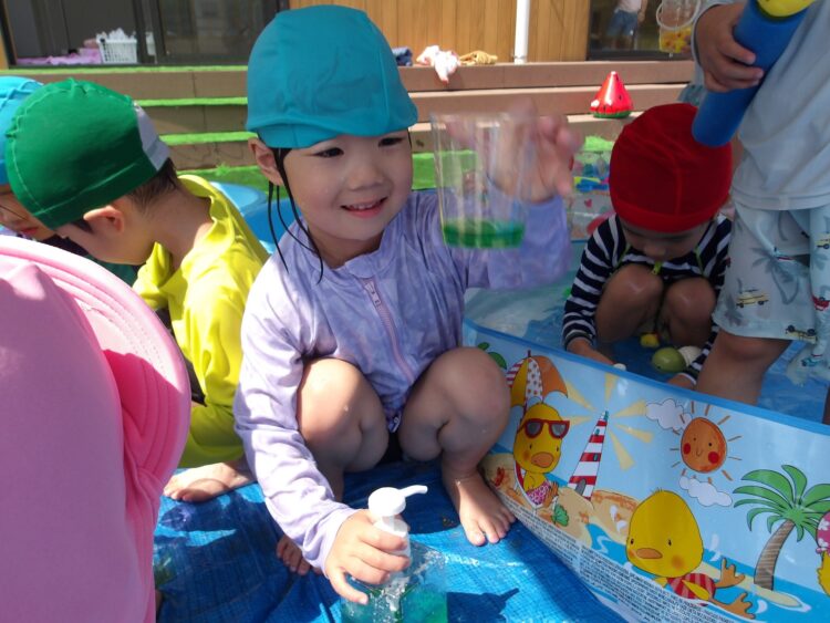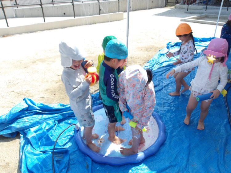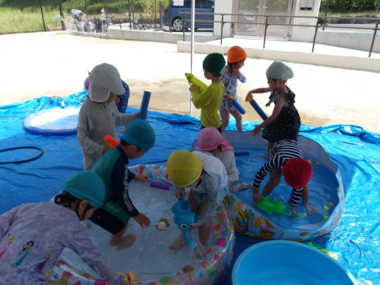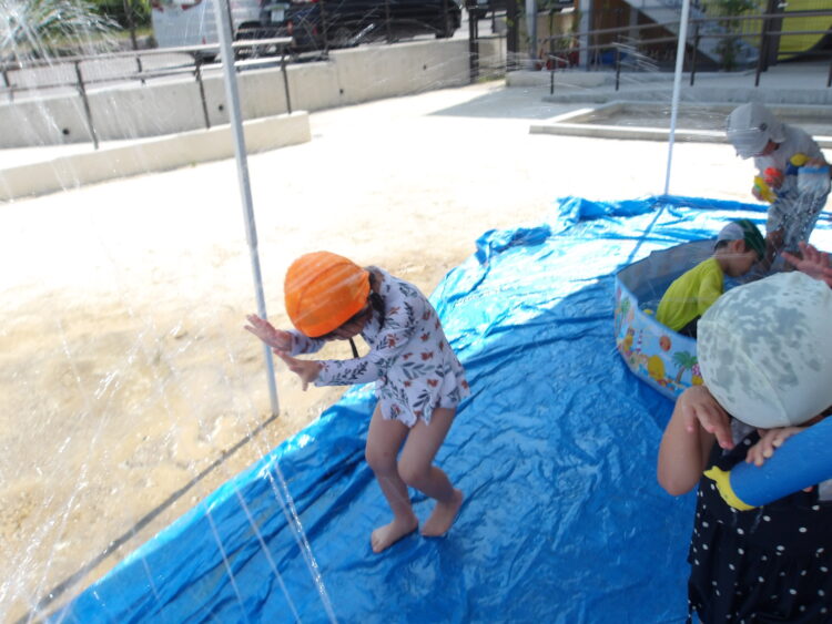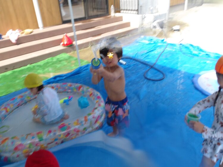 今日はそら組は水あそびをしました。