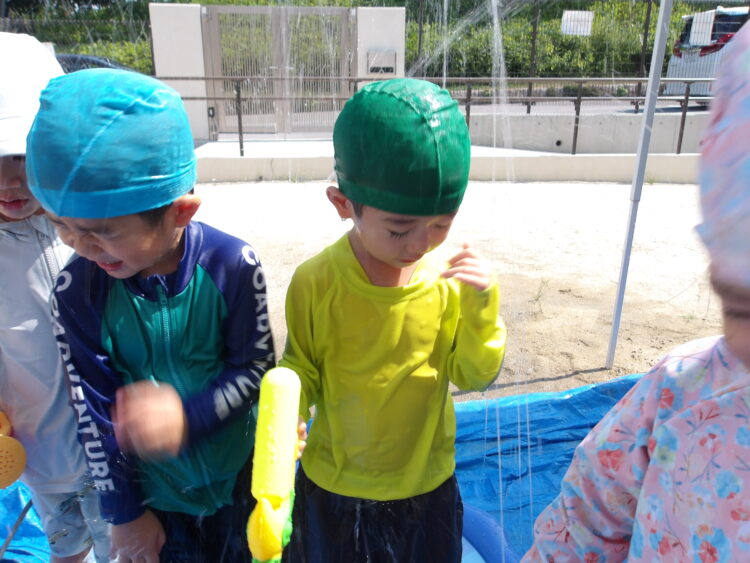 新しい水鉄砲も早速気に入った様子。