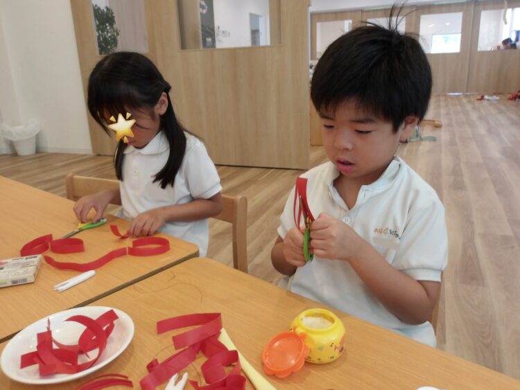 たいよう組は来週の茶の湯に向けて、9月のお茶室飾りを作りました。