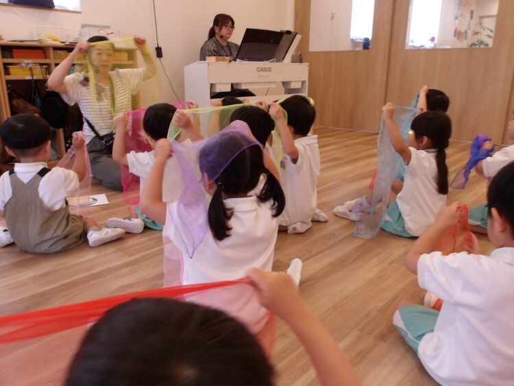 にじ組はリトミックの経験を重ね、リズムの取り方や音符の読み方が分かってきましたよ。