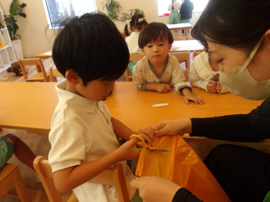 明日は作った仮装を身に着けて、園の周辺を出かける予定です。