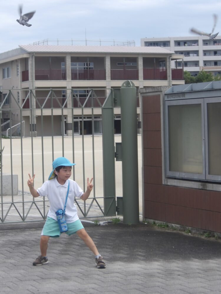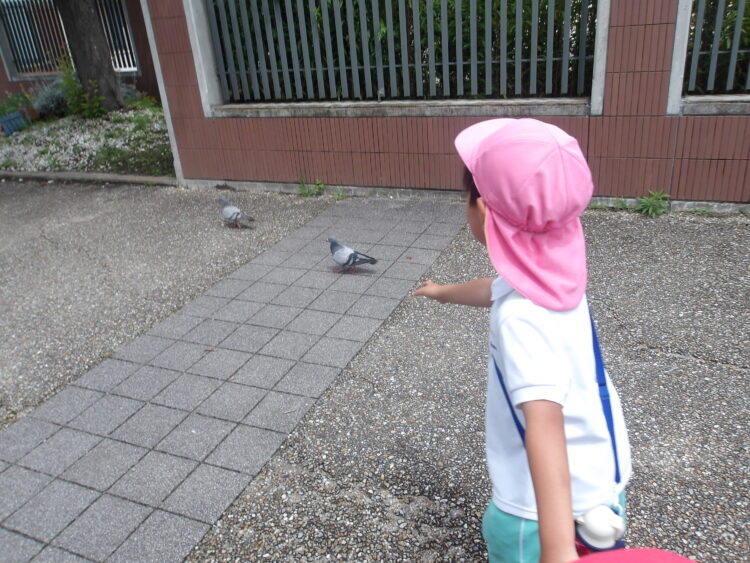「先生!ハトと写真撮って!」とリクエストし、そっとハトに近づこうとしていました😂
