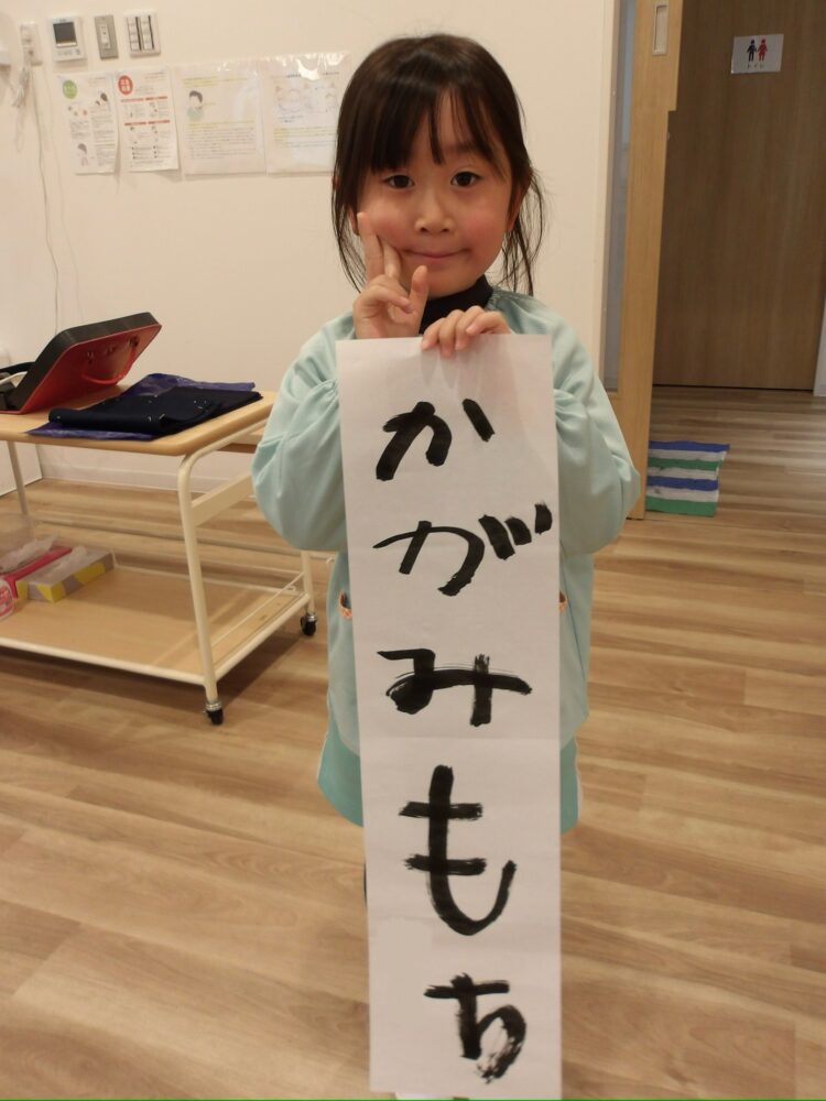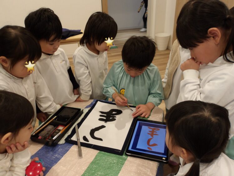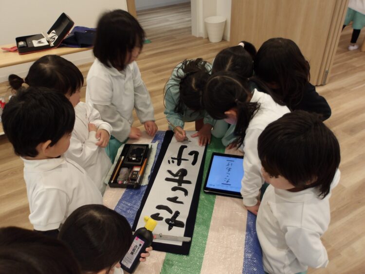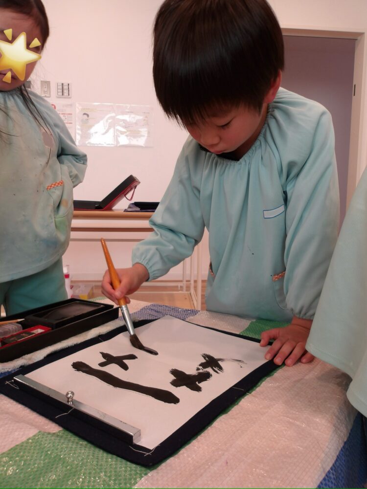 リトミックの前にたいよう組は書き初めを行いました。