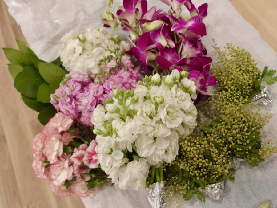 春らしく、華やかで可愛らしいフラワーが完成しました!