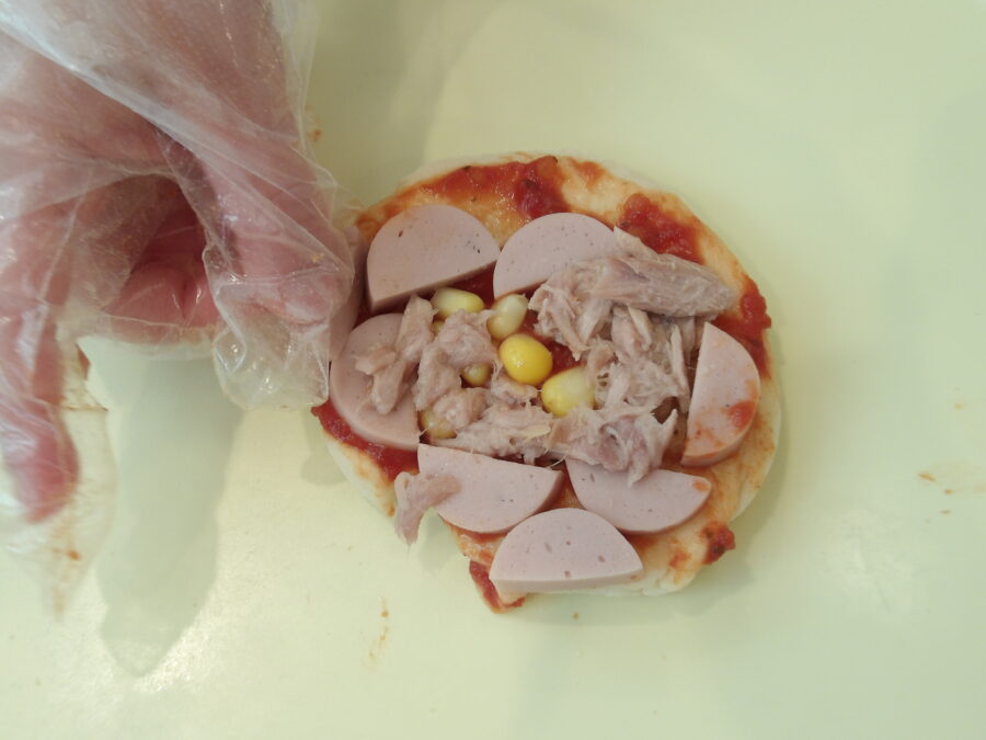 ツナ、コーン、魚肉ソーセージを自分好みにトッピング♩