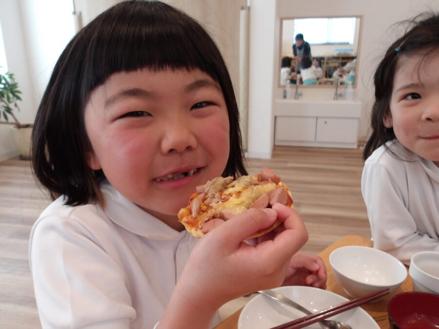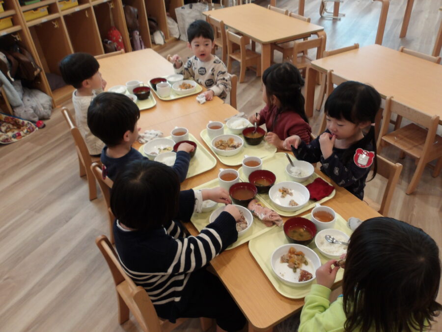 進級に向けて、今日はエプロンを着けずに給食を食べました。