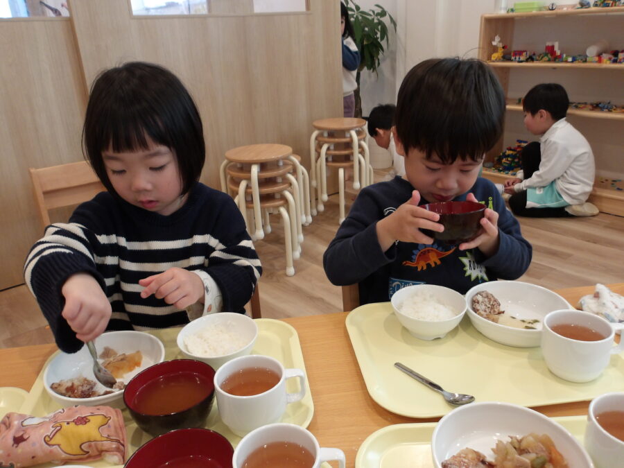 時々こぼしてしまうこともありましたが、こぼすとすぐに気づく姿があり、気をつけて食べようと意識することができていました。
