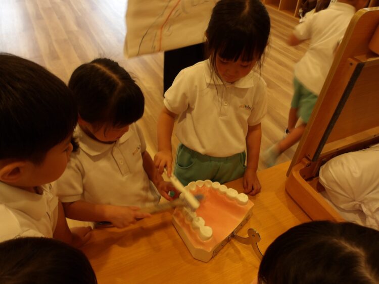 歯ブラシを動かす速さや磨く場所の順番なども教わりました。