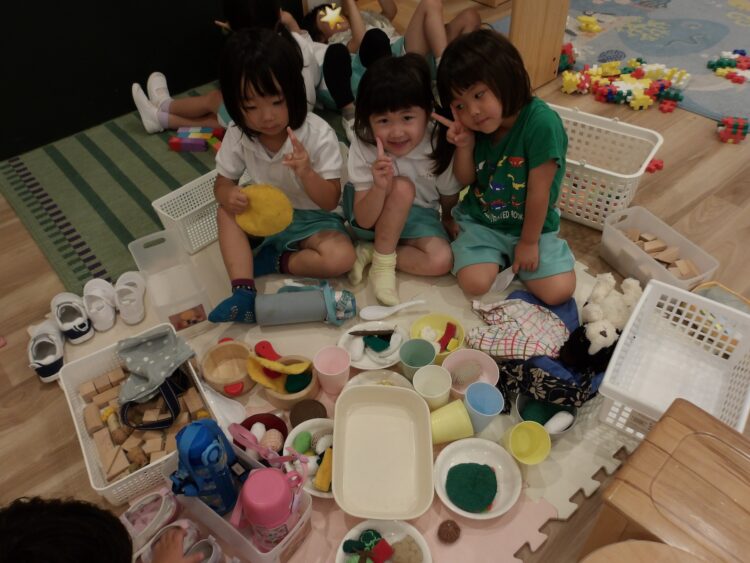 歯科教室が気になるそら組さんは、時々隣の部屋を覗きながら、お部屋で好きなあそびを楽しみました。