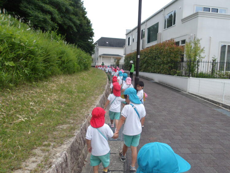 水やりが終わったら皆んなで仲良く手を繋いで公園に出発〜!