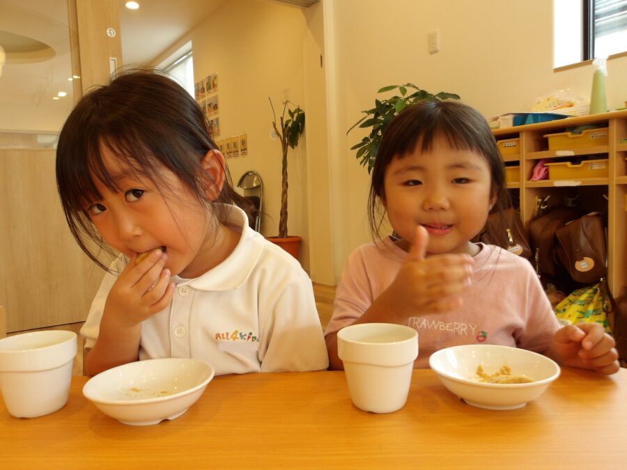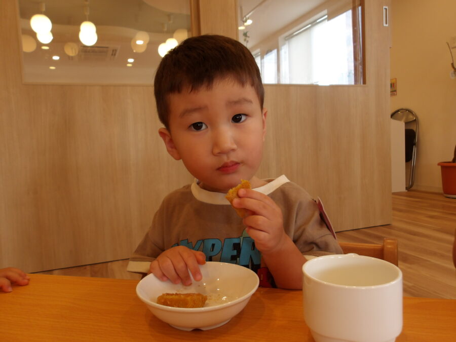 おやつはお月さまのように黄色いさつまいものお団子でした🌕🍠