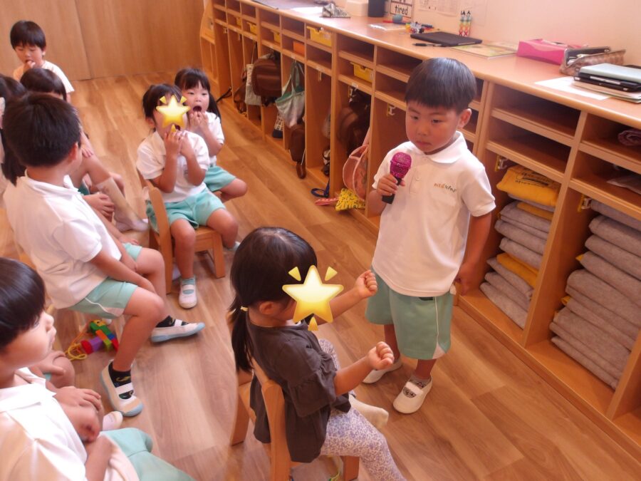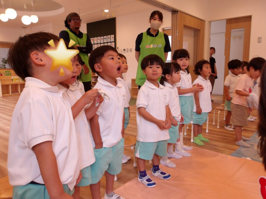 演奏に合わせて七夕の時のように英語と日本語で歌を歌いました。