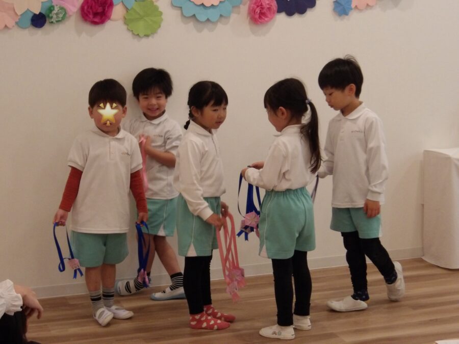 そら組がEnglish Timeをしている頃、たいよう組さんは入園式に来た、新しいお友だちのお出迎えをしてくれました。