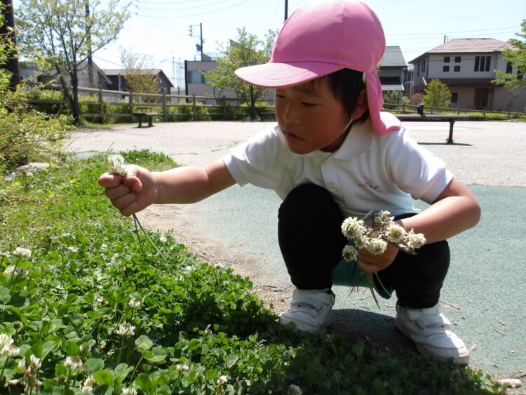 お花を見つけて思わず笑顔になる子どもたちの表情は微笑ましいです。