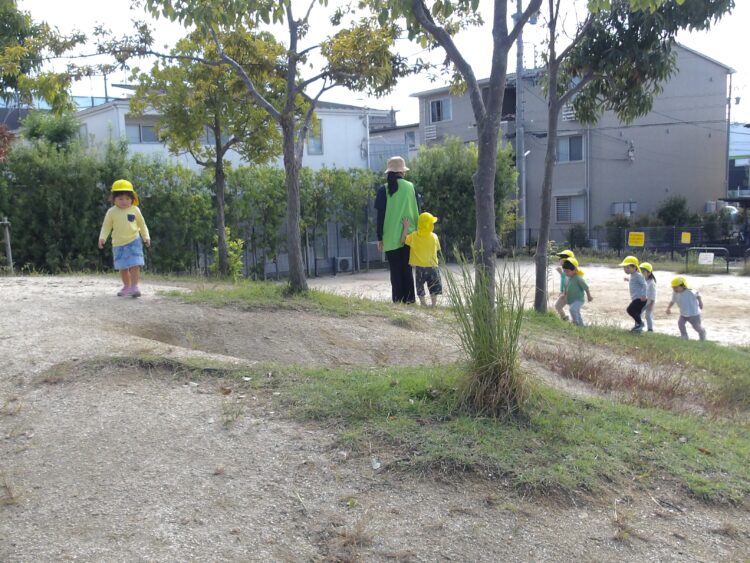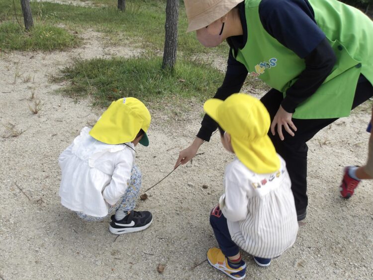 他にもドングリないかな?虫はいないかなー?と走り回って大捜索。何かを見つけるたびに保育者に教えにきてきれました。