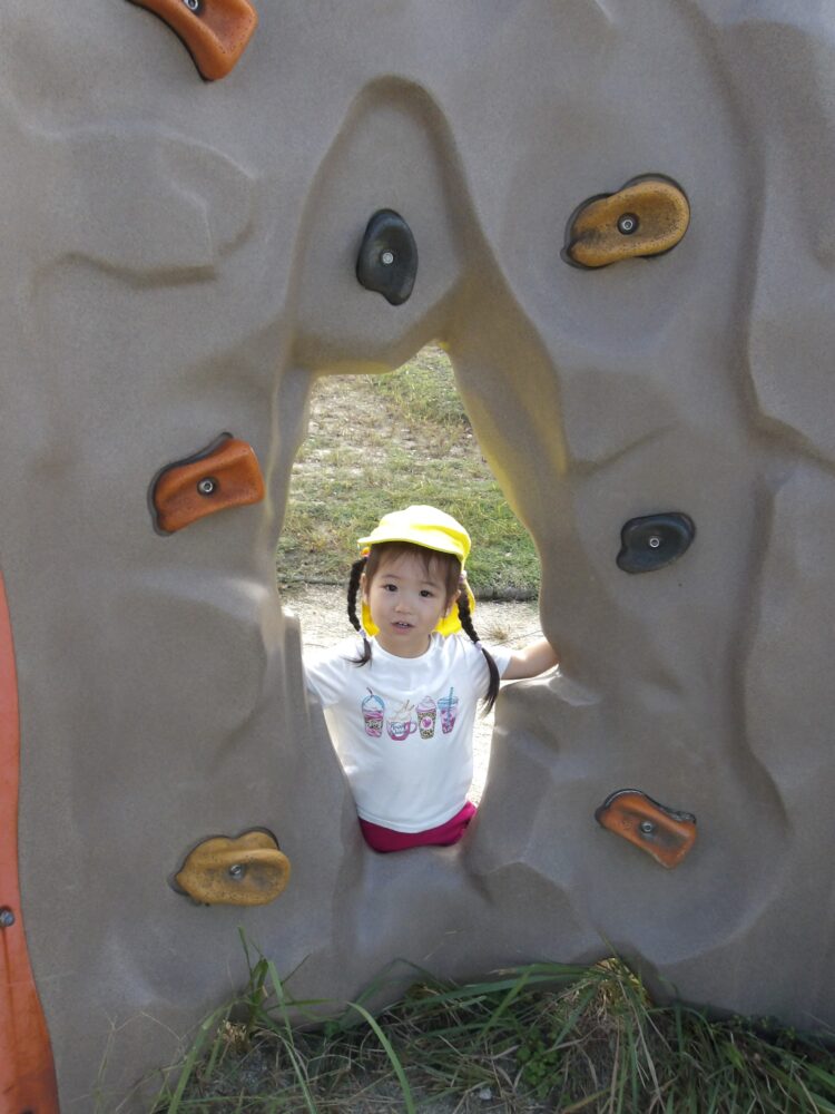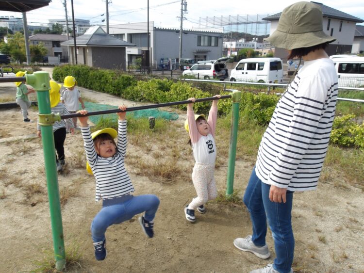 遊具も目新しいものがたくさん。体操教室で練習した鉄棒も余裕の表情です!