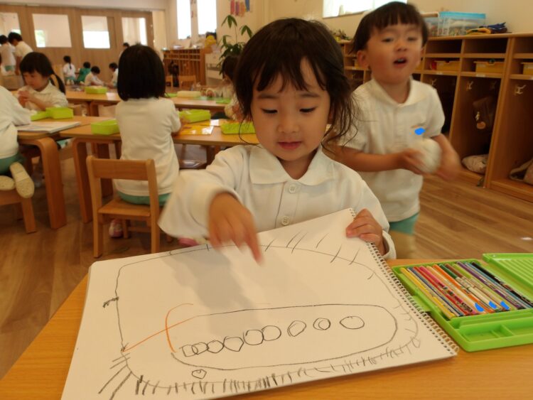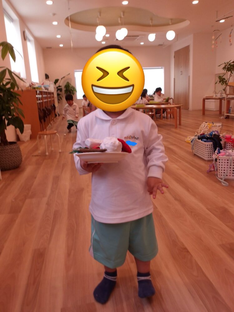 描いた絵を見せたくれたり!おままごとで作った料理を食べさせたりしてくれました今日も元気に過ごした子供達でした