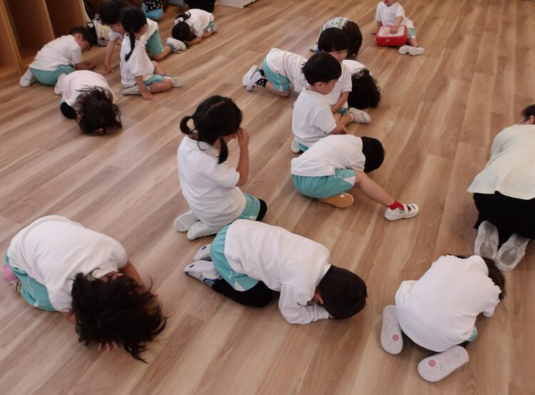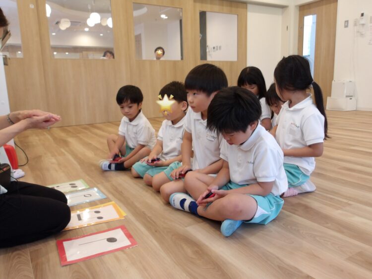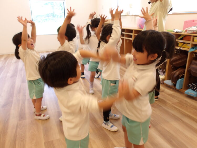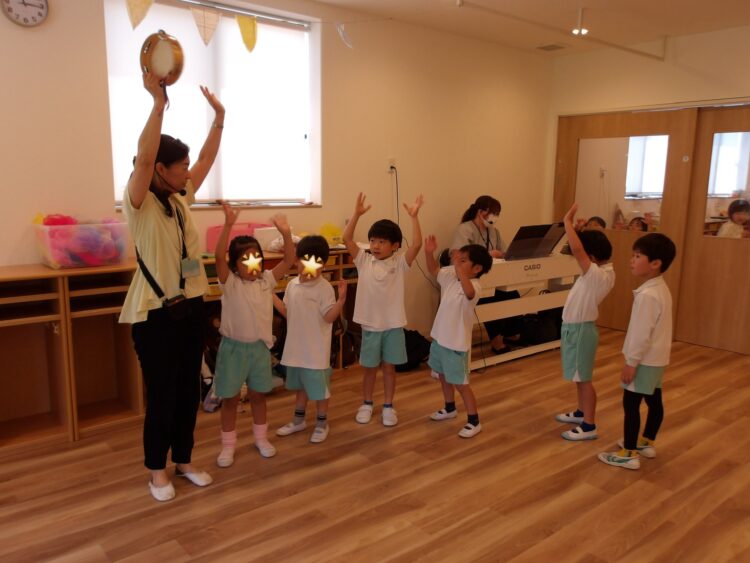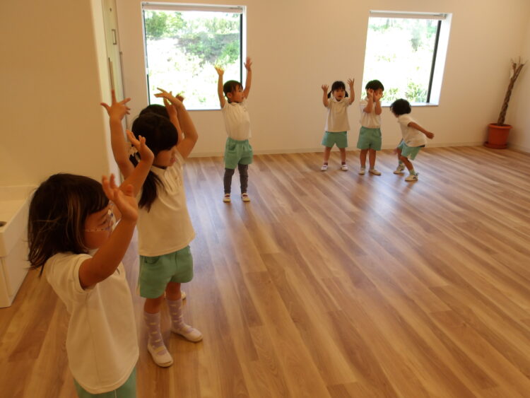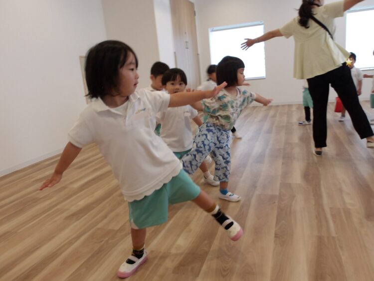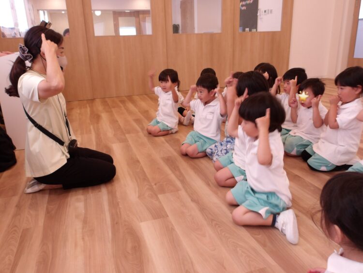ピアノの音をよく聞いて、講師の動きを真似て、どんな音が鳴ったらどんな表現をするのかを覚えていくそら組です。