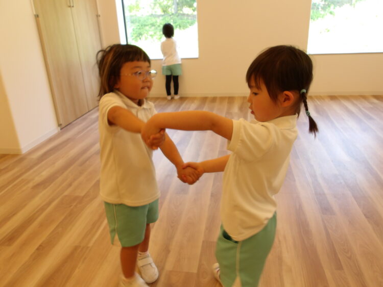 《たんぽぽたん》というリズムあそびを2人組になって楽しみました。