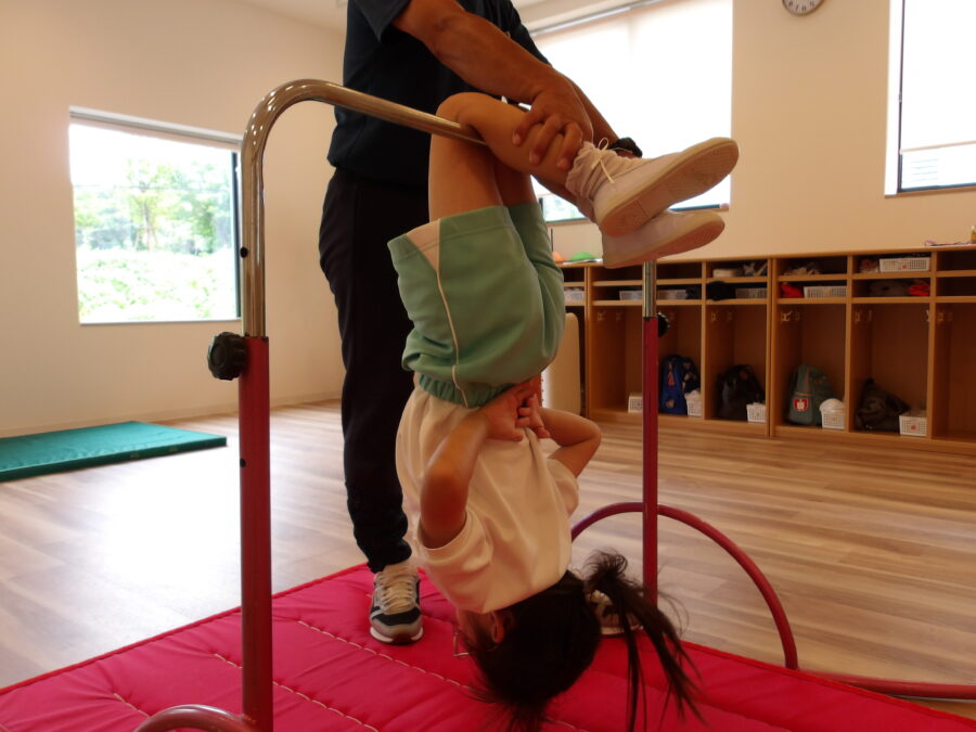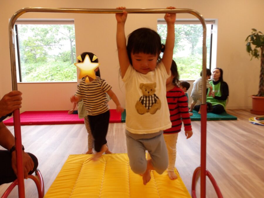 おさるさんみたいにぶら下がったり、鳥さんのポーズ!