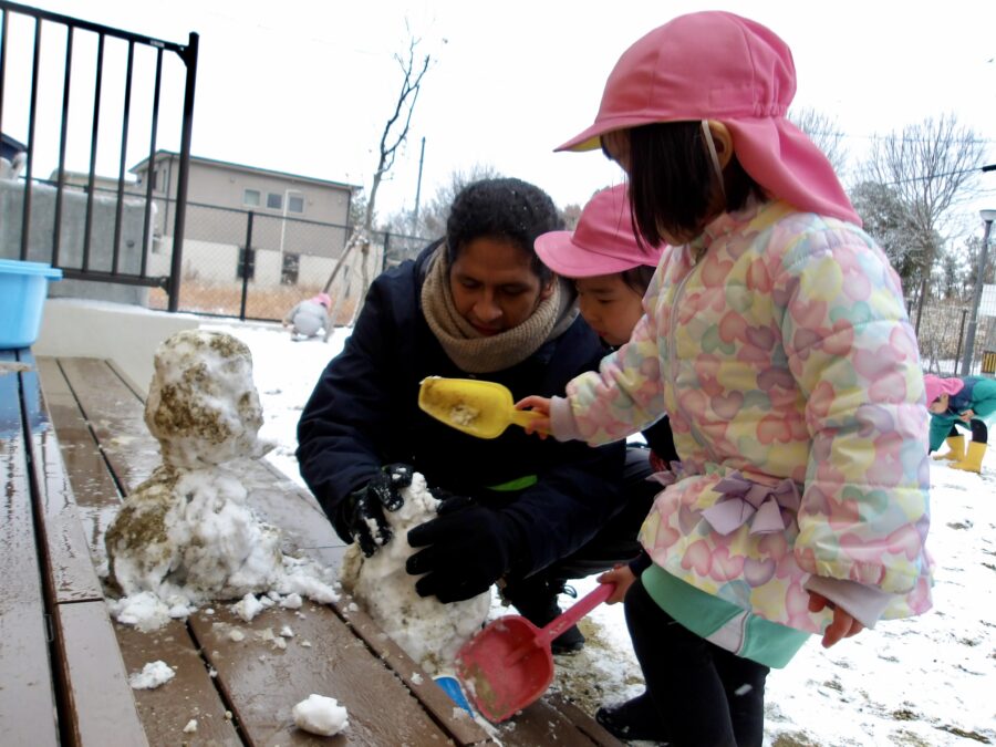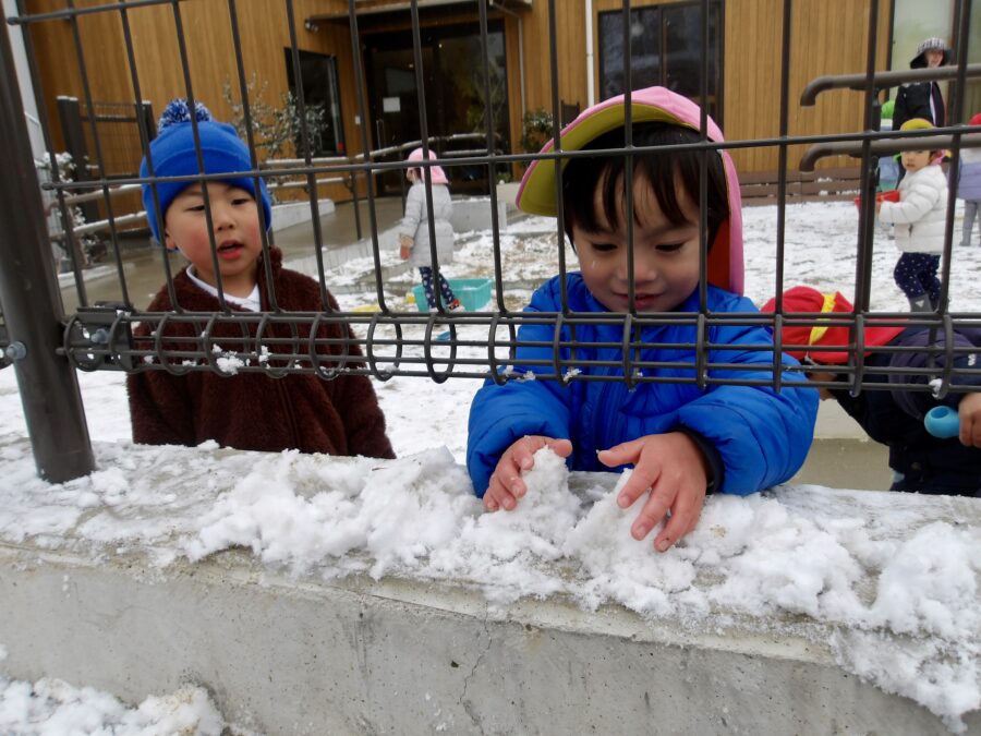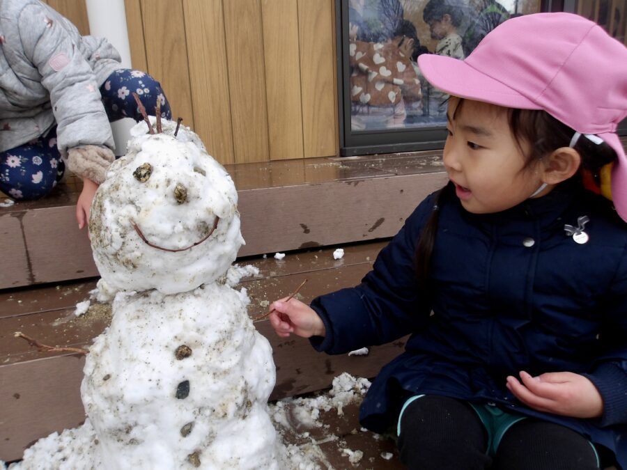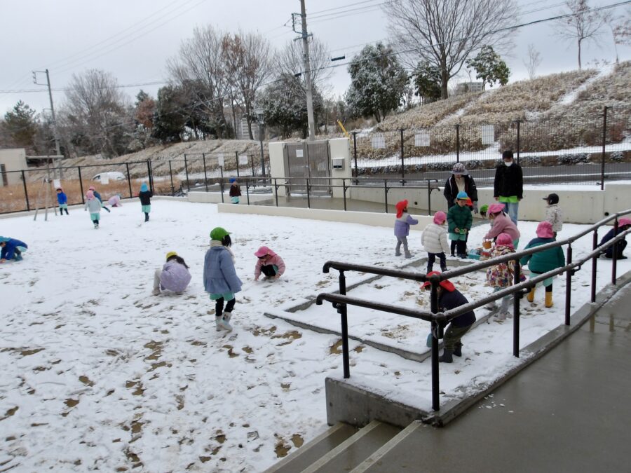 雪だるまや雪合戦、砂場のおもちゃで思いおもいに雪あそびを楽しみましたよ。