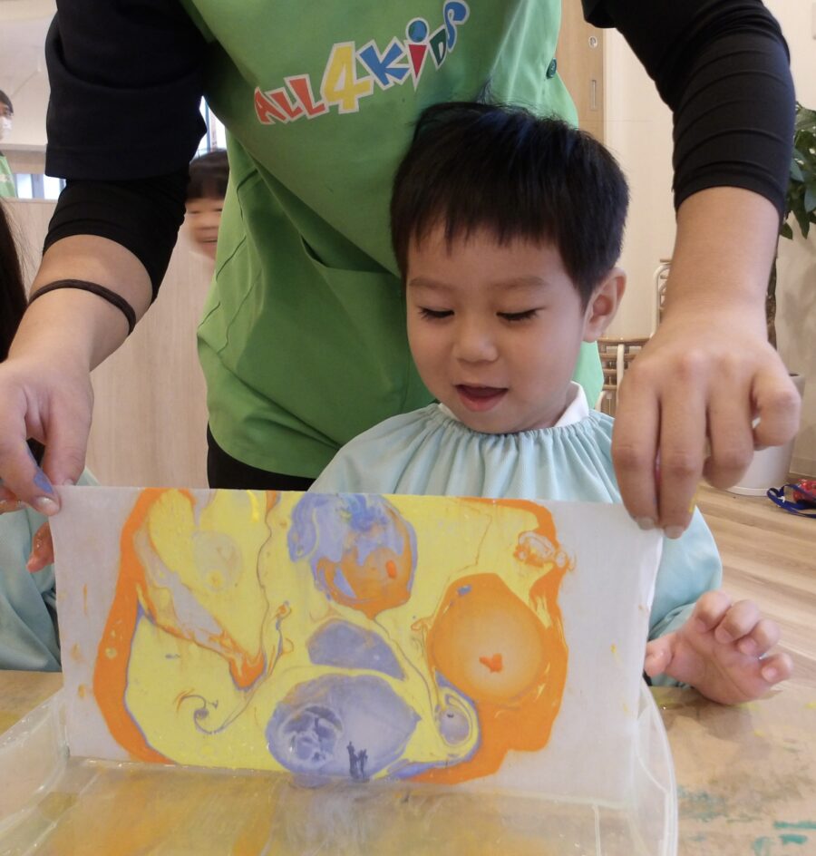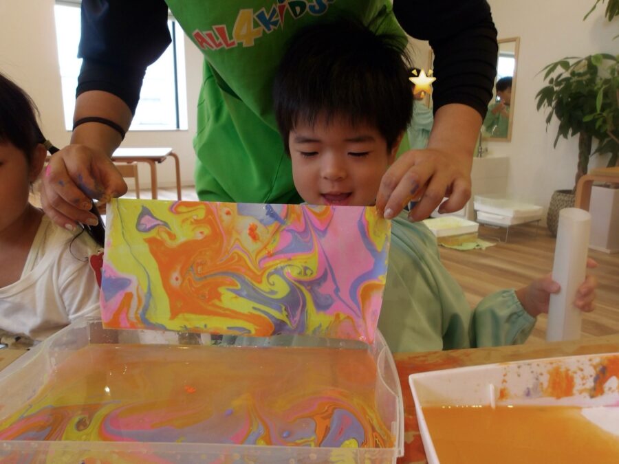絵の具がじわじわ広がっていく様子に興味津々!