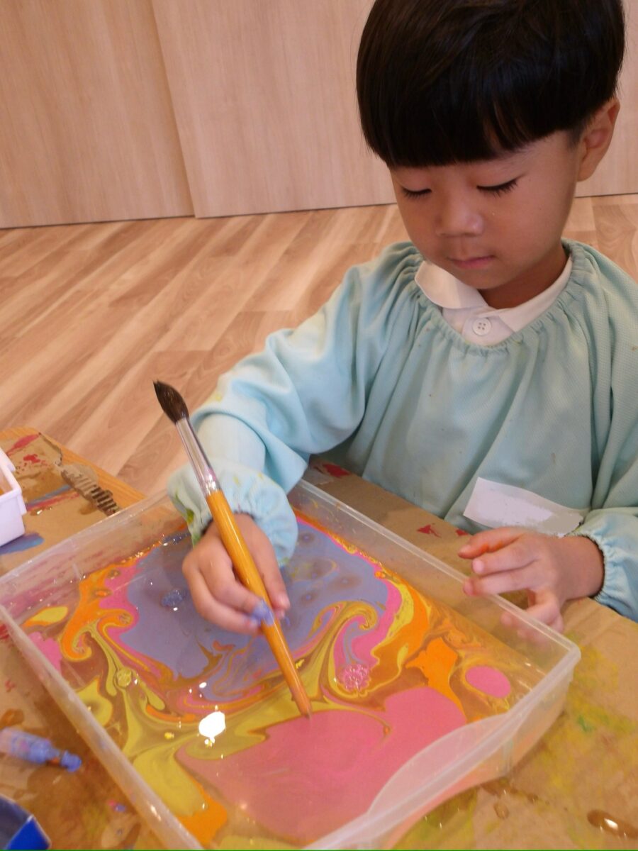 さらに筆の先でなぞると、絵の具が動いてさまざまな模様になっていきました。