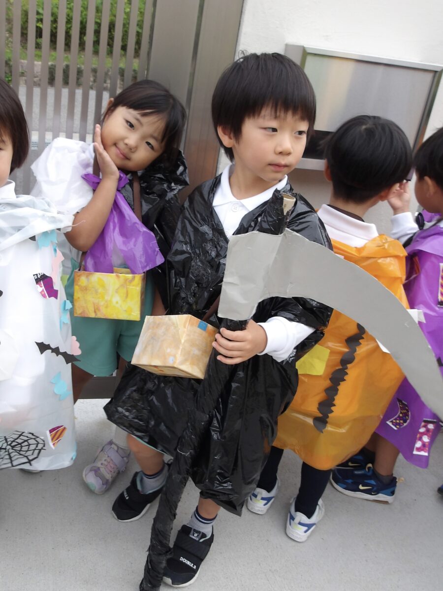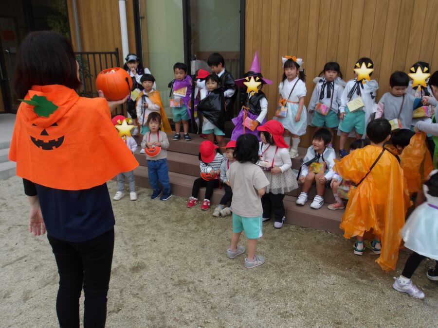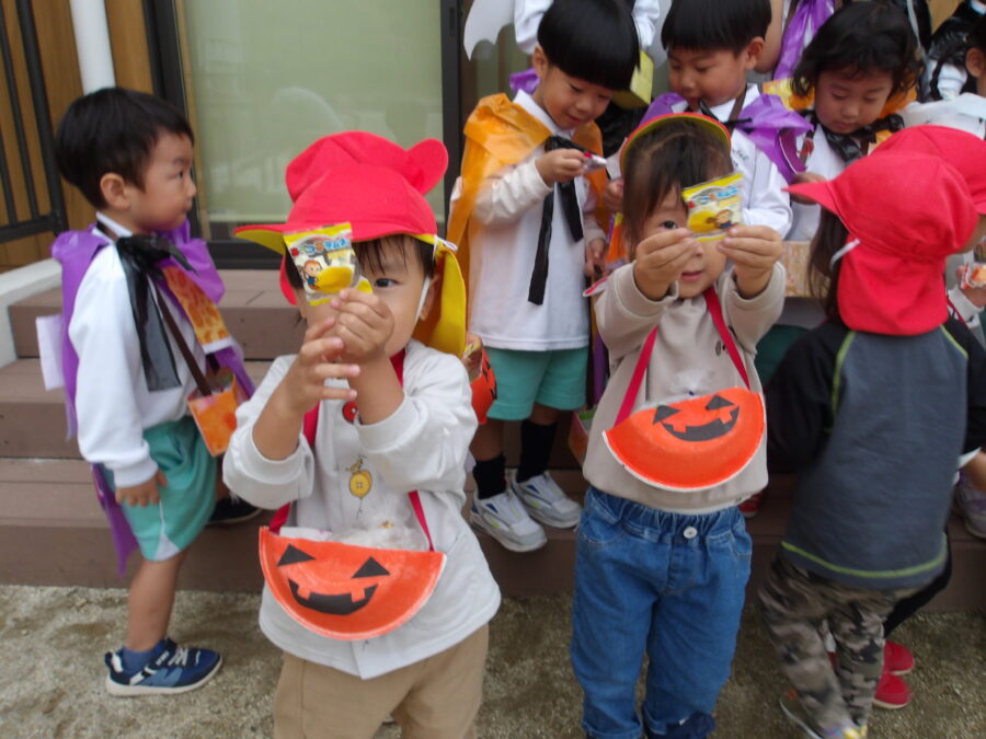 たくさん歩いて保育園に帰ると、園長先生にも「トリックオアトリート!」