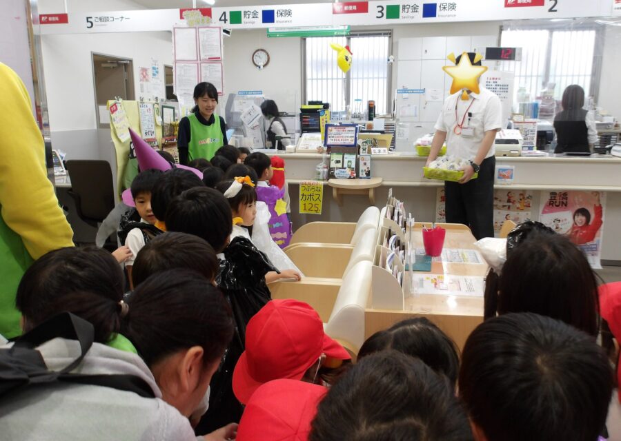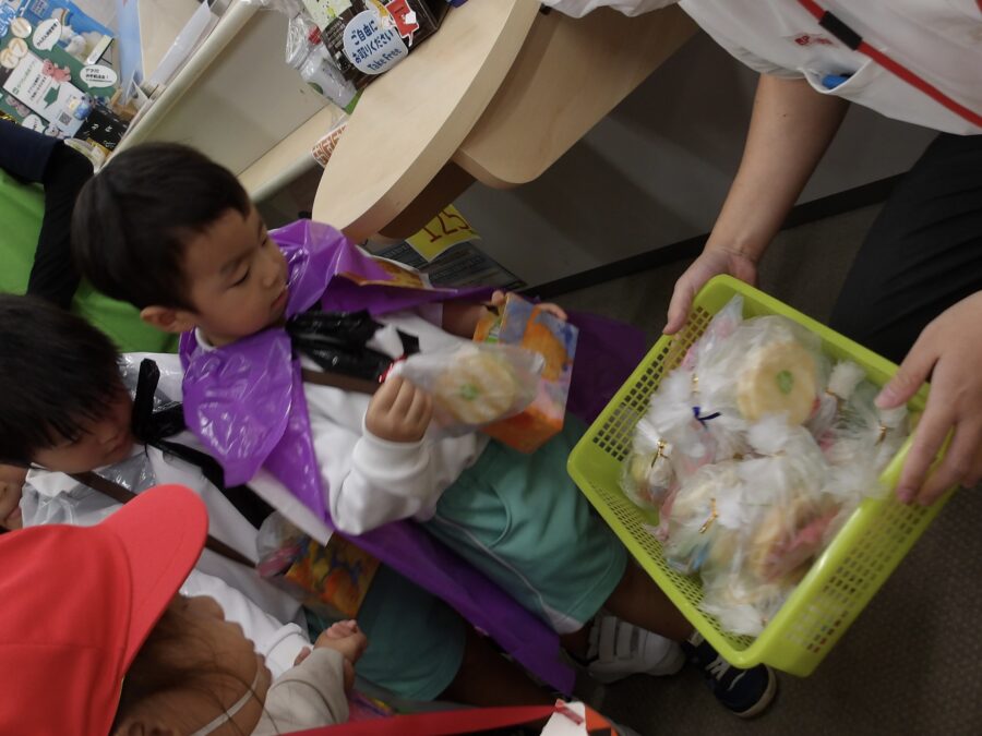 局員さんからお菓子をいただくことができました!衣装も褒めてもらい、嬉しそうな子どもたち。