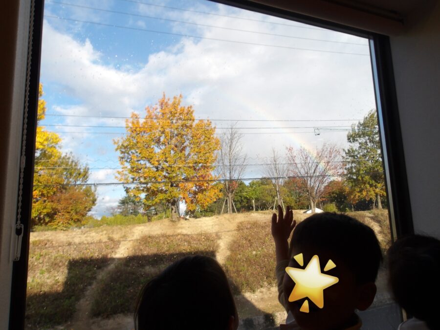 おやつを食べようとした頃、虹を見つけました。